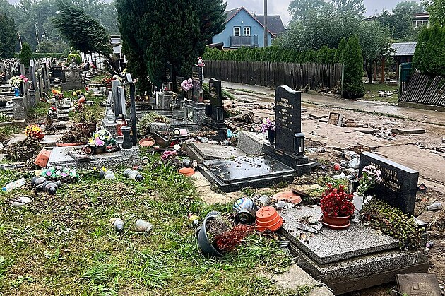 Rozvodněná Opavice se nevyhnula ani městskému hřbitovu, kde poničila nejen některé hroby a hřbitovní zeď, ale také kostel Povýšení sv. Kříže, v němž jsou do odvolání zrušeny církevní smuteční obřady.