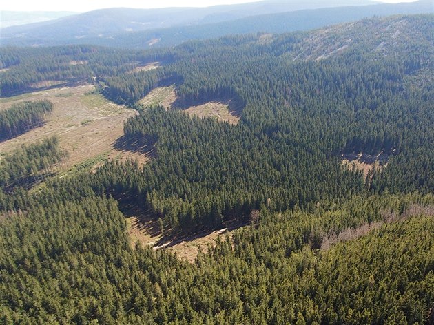 Fotografie pořízené ekology, které podle nich dokazují holoseče ve druhé zóně Chráněné krajinné oblasti Jeseníky.