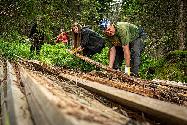 Dobrovolníci pomáhají zalesňovat holiny, které v Jeseníkách vznikly kvůli kůrovcové kalamitě. Osvědčily se jim břízy, které rostou rychle a jsou odolné i vůči nepříznivým podmínkám. (11. července 2023)