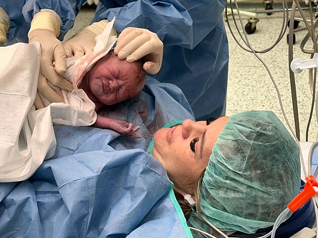 Matka si během vstřícného císařského řezu k sobě dítě přivine těsně po jeho narození, ještě během operace.