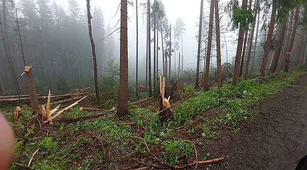 Následky vichřice mezi Mosty u Jablunkova, Hrčavou a Bukovcem na Frýdecko-Místecku.(19. června 2025)