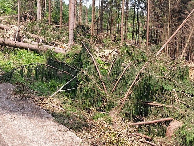 Následky vichřice mezi Mosty u Jablunkova, Hrčavou a Bukovcem na Frýdecko-Místecku.(19. června 2025)