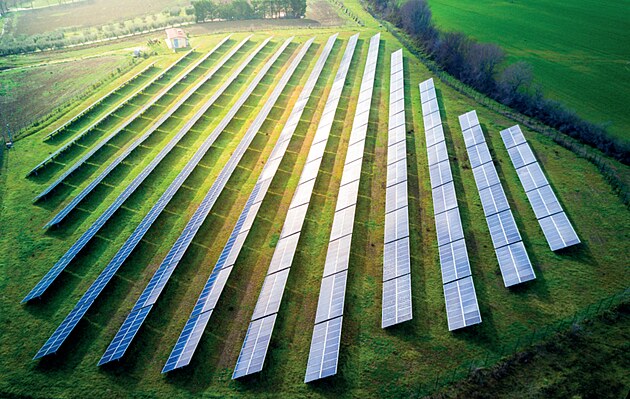 Vizualizace solární elektrárny u Lichnova na Bruntálsku (10. ledna 2025)