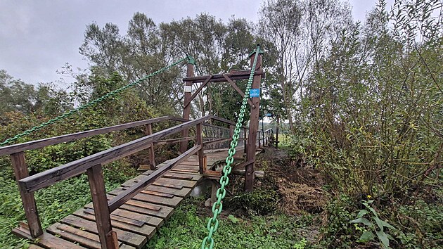 Dřevěný řetězový most přes Ondřejnici u Ostravy – Proskovic chátrá a nově ho převezme do majetku město Ostrava. (7. října 2024)