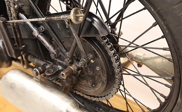 Anglický motocykl AJS 500 OHV z roku 1929 se díky šikovnosti studentů Vysoké školy báňské - Technické univerzity Ostrava opět skví v takřka původní kráse. (16. června 2025)