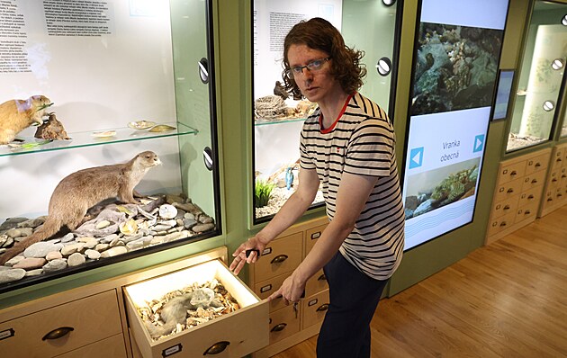 Středověký poklad, šuplíky s překvapení nebo barokní mapu s plány na kanál Dunaj–Odra–Labe uvidí návštěvníci v nové expozici, kterou Muzeum Oderska v Odrách zpřístupnilo lidem. (26. červen 2025) Na smímku historik Adam Hubáček