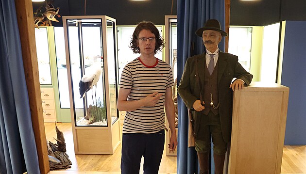 Středověký poklad, šuplíky s překvapení nebo barokní mapu s plány na kanál Dunaj–Odra–Labe uvidí návštěvníci v nové expozici, kterou Muzeum Oderska v Odrách zpřístupnilo lidem. (26. červen 2025) Na smímku historik Adam Hubáček