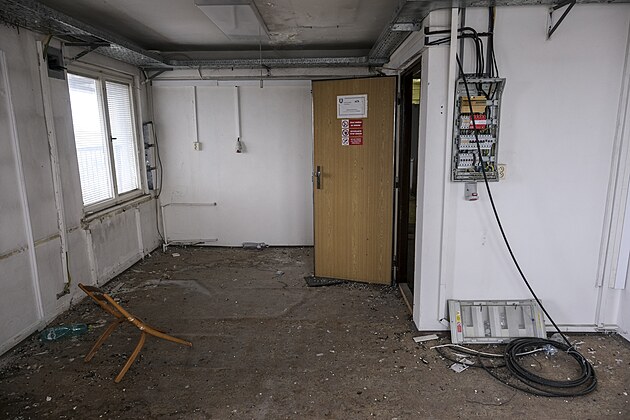 Stav útrob socialistického mrakodrapu na Ostrčilově ulici v centru Ostravy zůstává značně neutěšený. (17. července 2025)