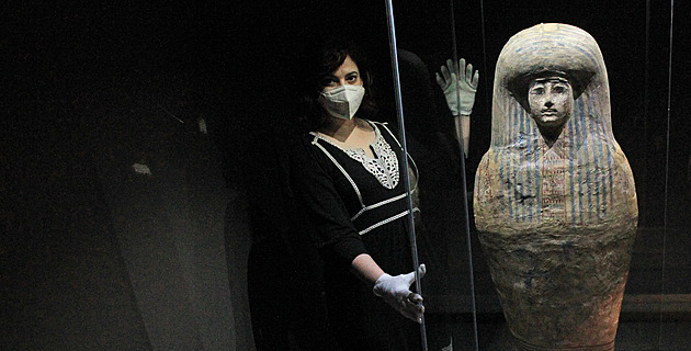 Vzácný obal, původem z Egypta, zapůjčil jeho novodobý držitel, Náprstkovo muzeum v Praze. Předtím patřil ostravské spisovatelce. „Kartonážový obal na mumii představuje nejvíce atraktivní exponát naší expozice. Původním majitelem bylo Slezské zemské muzeum, tehdy ještě Muzeum císaře Františka Josefa pro umění a řemesla. Darovala mu jej v roce 1913 Maria Stona, ostravská spisovatelka a básnířka,“ upozornil Jiří Juchelka, jeden z autorů výstavy.