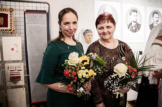 Lucie Kaminská (vlevo) a Eva Hovorková, autorky unikátní knihy Putování za krásou o díle Jiřiny Králové (15. února 2025)