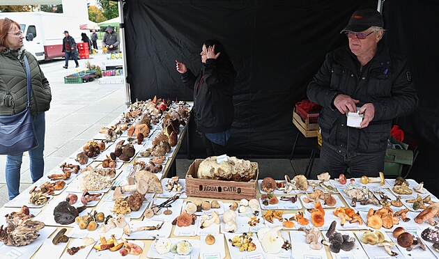 Zajímavostí posledních letošních farmářských trhů v Kopřivnici byla výstava osmdesáti druhů hub, kterou připravil mykolog Jaromír Durček. (15. říjen 2025)