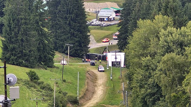 Ve Starých Hamrech se převrátil autobus se studenty. Zranilo se přes třicet cestujících. (8. září 2025)
