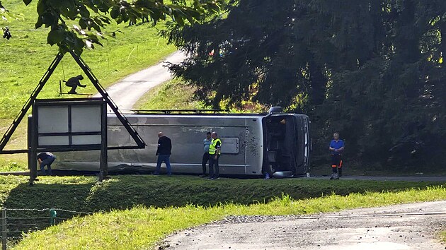Ve Starých Hamrech se převrátil autobus se studenty. Zranilo se přes třicet cestujících. (8. září 2025)