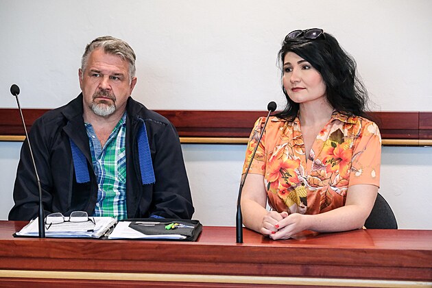 Nela Lisková stanula u soudu. Čelí obvinění za podněcování nenávisti a výzvy k denacifikaci Česka a manipulativní vyjádření k politickým stranám, homosexuálům i muslimům. Na snímku s obhájcem Luďkem Růžičkou. (9. dubna 2024)