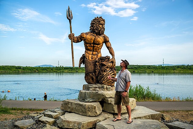 Karvinské moře má nového strážce - sochu Neptuna - jehož autorem je karvinský řezbář Karel Buchta (na snímku).