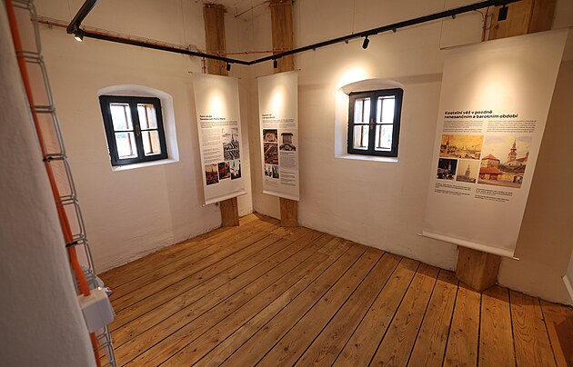 Město vnitřní prostory kostelní věže zvelebilo, nechybí například ani výstavka o historii této sakrální památky. (30. srpna 2025)