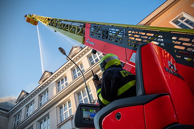 Náročná likvidace požáru střech škol v Českém Těšíně na Karvinsku. (2. srpna 2024)