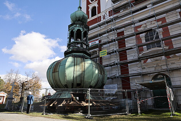 Přímo před poutním kostelem odborníci věž odpláští, rozeberou a obnoví krov, dají nové krytí, makovici i kříž.