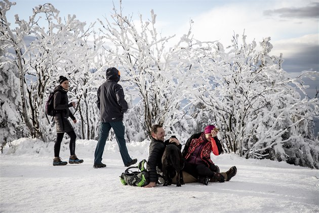 I přes uzavřené skiareály a hotely a další opatření nouzového stavu, zamířilo do Beskydských hor veliké množství návštěvníků. Ostravice (2. ledna 2021)