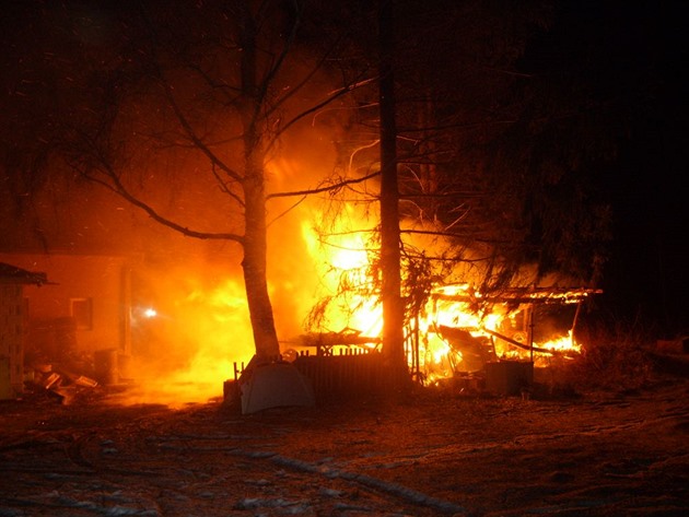 Garáž s dílnou a skladem začala hořet ve středu večer v obci Široká Niva, místní části Pocheň na Bruntálsku. Hasiči se o požáru dozvěděli krátce po deváté hodině večer.
