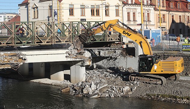 V centru Opavy začala demolice mostu, který byl poškozen při zářijových povodních. (18. ledna 2025)