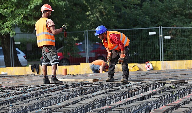 Stavbaři dokončují konstrukci klíčového mostu v opavské Ratibořské ulici, kde povodeň zničila ten původní. (25. srpna 2025)