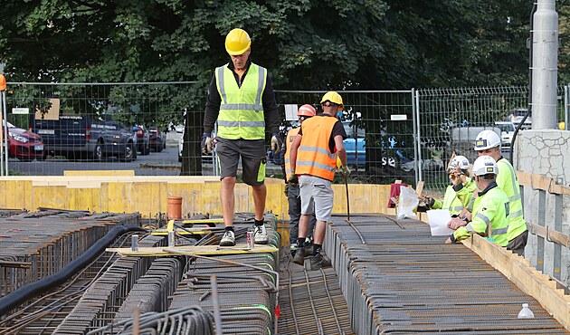 Stavbaři dokončují konstrukci klíčového mostu v opavské Ratibořské ulici, kde povodeň zničila ten původní. (25. srpna 2025)