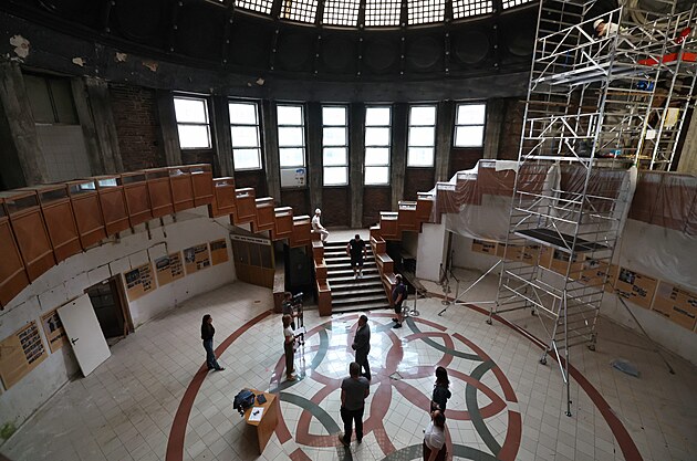 Restaurátoři začali v památkově chráněném opavském obchodním domě Breda s čištěním kopule (21. 8. 2025).