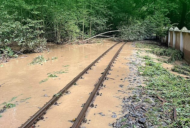 Povodeň poškodila i úzkorozchodnou železniční trať na Osoblažsku. (16. září 2024ú