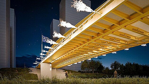 Nový most v ulici Na Karolině bude mít po stranách chrliče ohně. (2. října 2025)