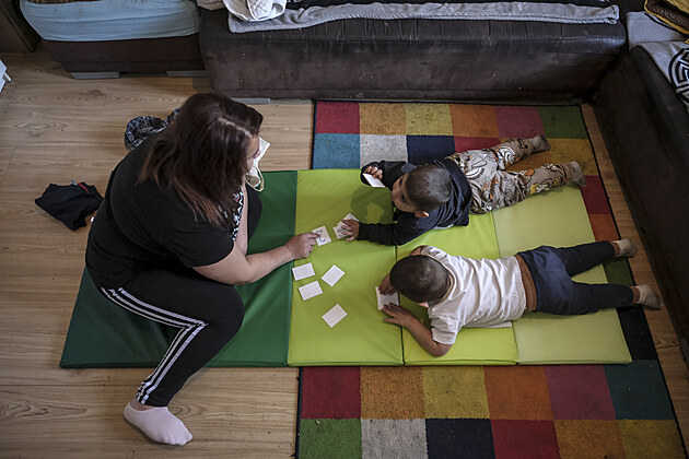 Erika Biháriová při výuce s chlapci Zdeňkem s Viktorem