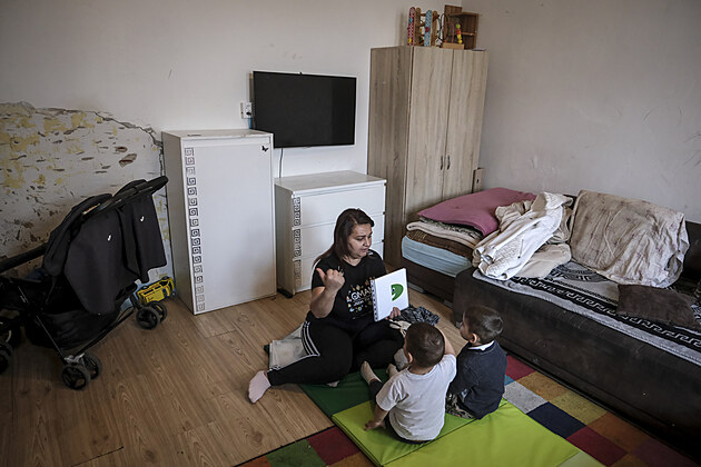 Erika Biháriová při výuce s chlapci Zdeňkem s Viktorem