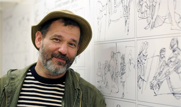 Nedávno maloval i známého výtvarníka Knížáka. „Milan Knížák mi říkal: Je to moc geniální, ubral bych čar,“ komentuje setkání se známou osobností.