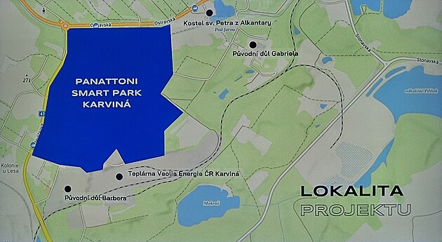 Umístění projektu velkého průmyslového parku Panattoni mezi Karvinou, Havířovem a Orlovou (21. listopadu 2024)