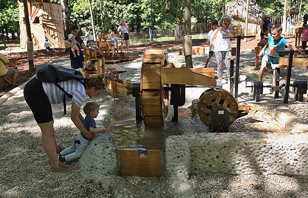Nově dokončený Park nad rybníkem v ostravském Bělském lese nabízí zábavu dětem a relax dospělým. Toto místo hlídá socha obryně vytesané z dubu a z akátu. (1. července 2025)