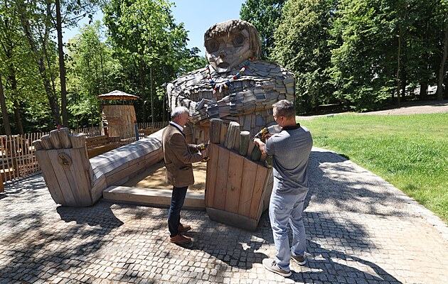 Nově dokončený Park nad rybníkem v ostravském Bělském lese nabízí zábavu dětem a relax dospělým. Toto místo hlídá socha obryně vytesané z dubu a z akátu. (1. července 2025)