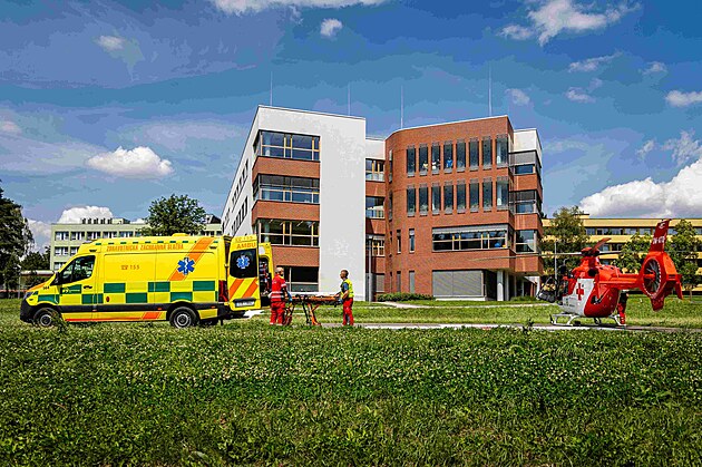 Po dobu rekonstrukce hlavního heliportu využívala Fakultní nemocnice Ostrava záložní v blízkosti Psychiatrického oddělení. (25. dubna 2025)