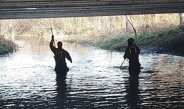 Policejní pátrání v potoce Olešná na Frýdecko-Místecku, kde byla nalezena uškrcená mladá Ukrajinka. (9. prosince 2025)