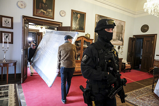 Zámek v Kuníně na Novojičínsku hostí unikátní obraz rakouské císařovny Sissi, portrét se od konce května do konce října stane součástí výstavy. Na převoz dohlíželi policejní těžkooděnci. (6. května 2025)