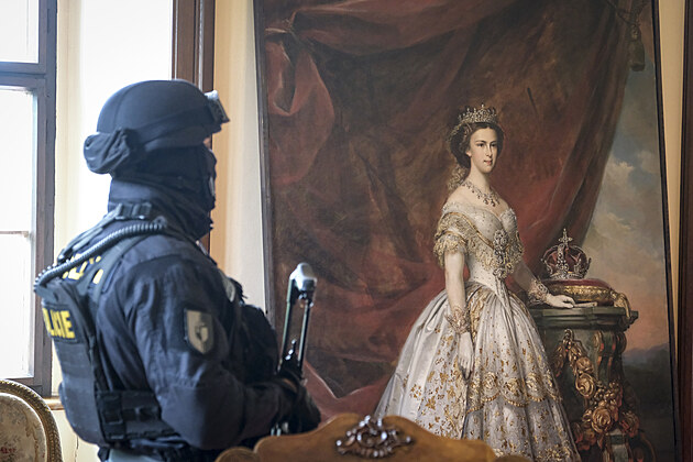 Zámek v Kuníně na Novojičínsku hostí unikátní obraz rakouské císařovny Sissi, portrét se od konce května do konce října stane součástí výstavy. Na převoz dohlíželi policejní těžkooděnci. (6. května 2025)