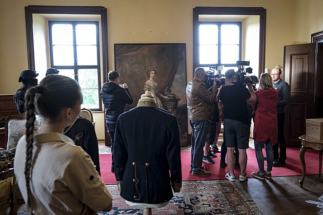 Zámek v Kuníně na Novojičínsku hostí unikátní obraz rakouské císařovny Sissi, portrét se od konce května do konce října stane součástí výstavy. Na převoz dohlíželi policejní těžkooděnci. (6. května 2025)