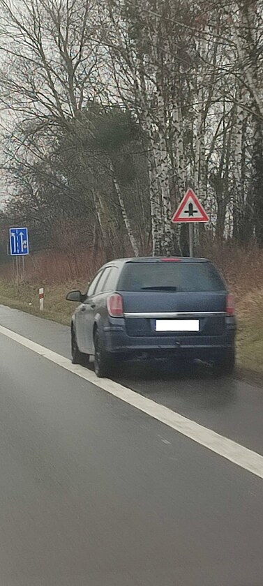 Auto s poškozenými pneumatikami a disky po průjezdu kruhovým objezdem rovně opilý řidič odstavil u krajnice.