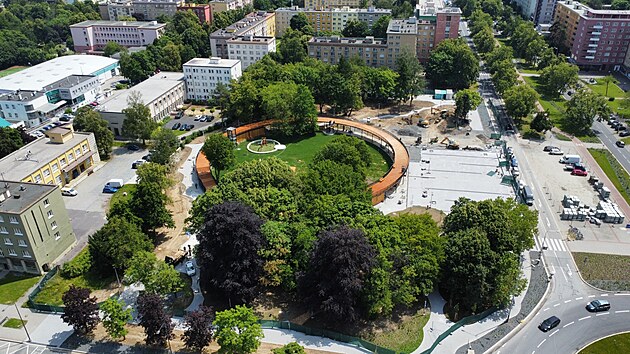 Prostranství na Hlavní třídě v Ostravě – Porubě se výrazně a neobvykle proměnilo. (8. července 2025)