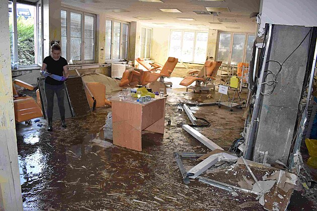 Úklid po povodni v krnovské nemocnici