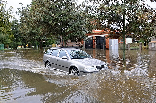 Voda zalila o víkendu také ulice Frýdku-Místku. Někteří řidiči jízdou zaplavenými ulicemi značně riskovali.