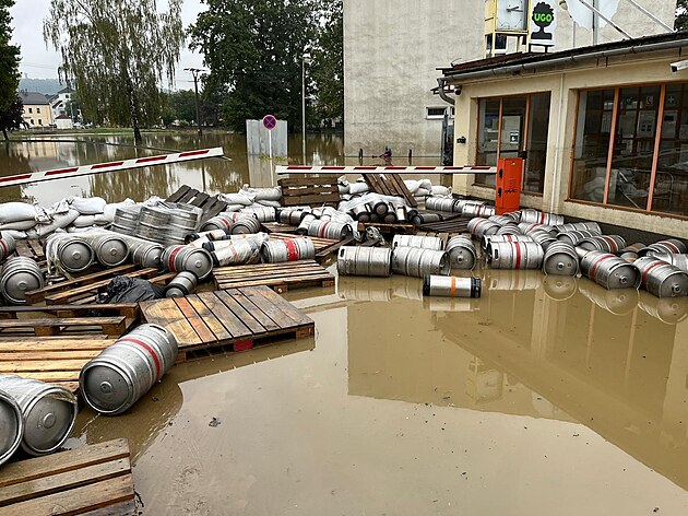 Barely se z výrobního podniku v Krnově valily vodou. (16. září 2024)