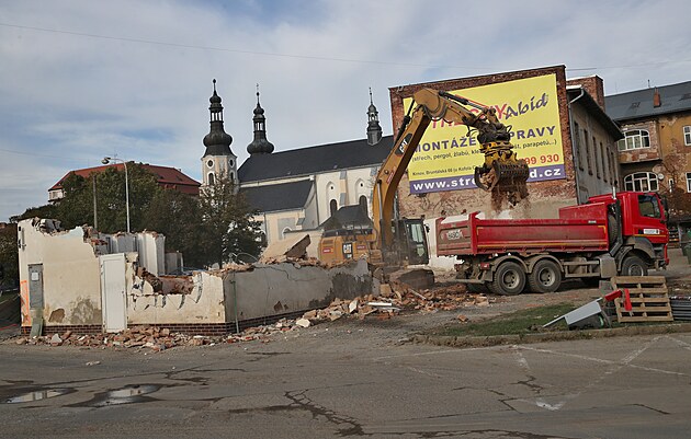 Těžká technika hasičů srovnala se zemí nebytový prostor na náměstí Minoritů, v němž býval zverimex. Jde o první objekt ve vlastnictví města, který povodeň poškodila natolik, že statik rozhodl o jeho odstranění.