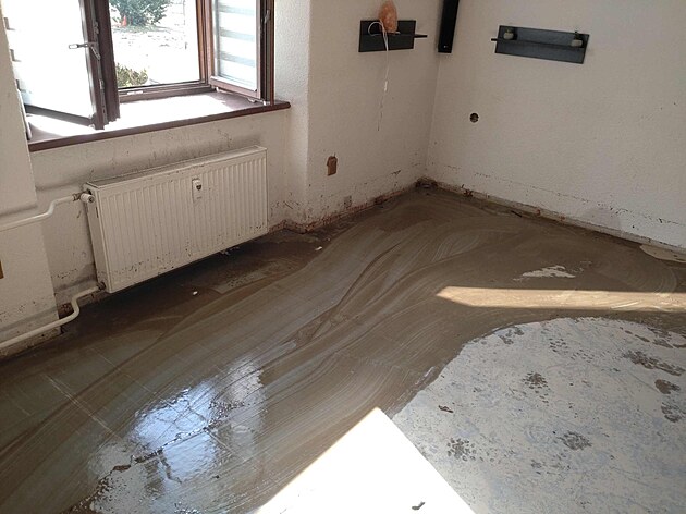 Pohled do domu, kde žila Nikola Braunová s přítelem nedlouho po povodni. Domov stále vysušují. (28. listopadu 2024)