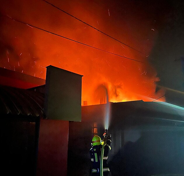 Likvidace požáru autoservisu v Klimkovicích u Ostravy (26. září 2025)