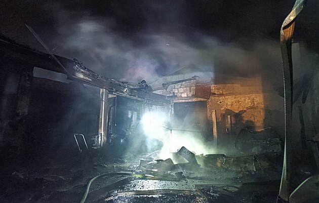 Likvidace požáru autoservisu v Klimkovicích u Ostravy (26. září 2025)